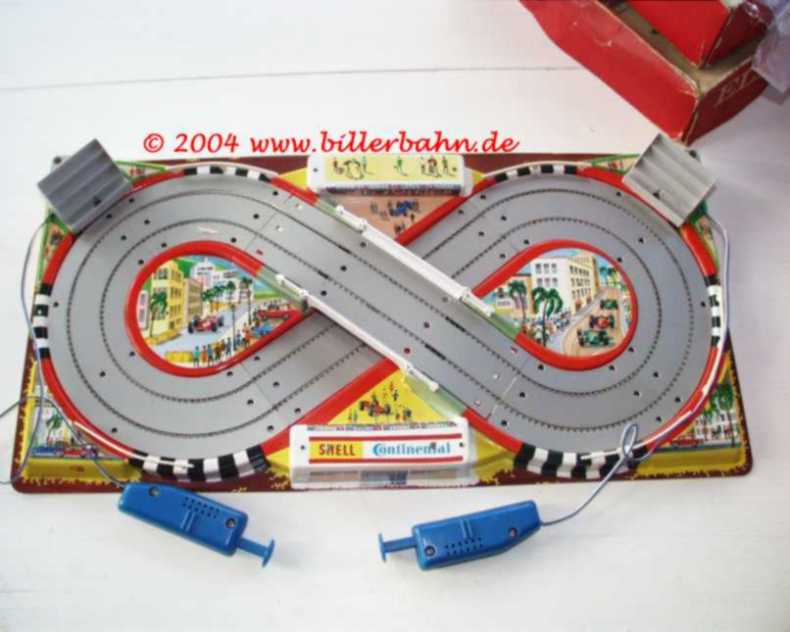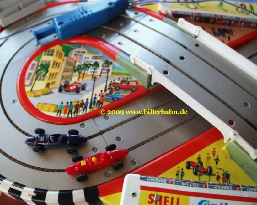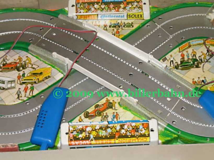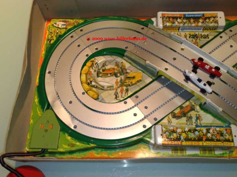 - und dem Karton der Rennbahn 901. Die alte Verkaufsbezeichnung wurde einfach überklebt. Die Spiralfederaufnahmen