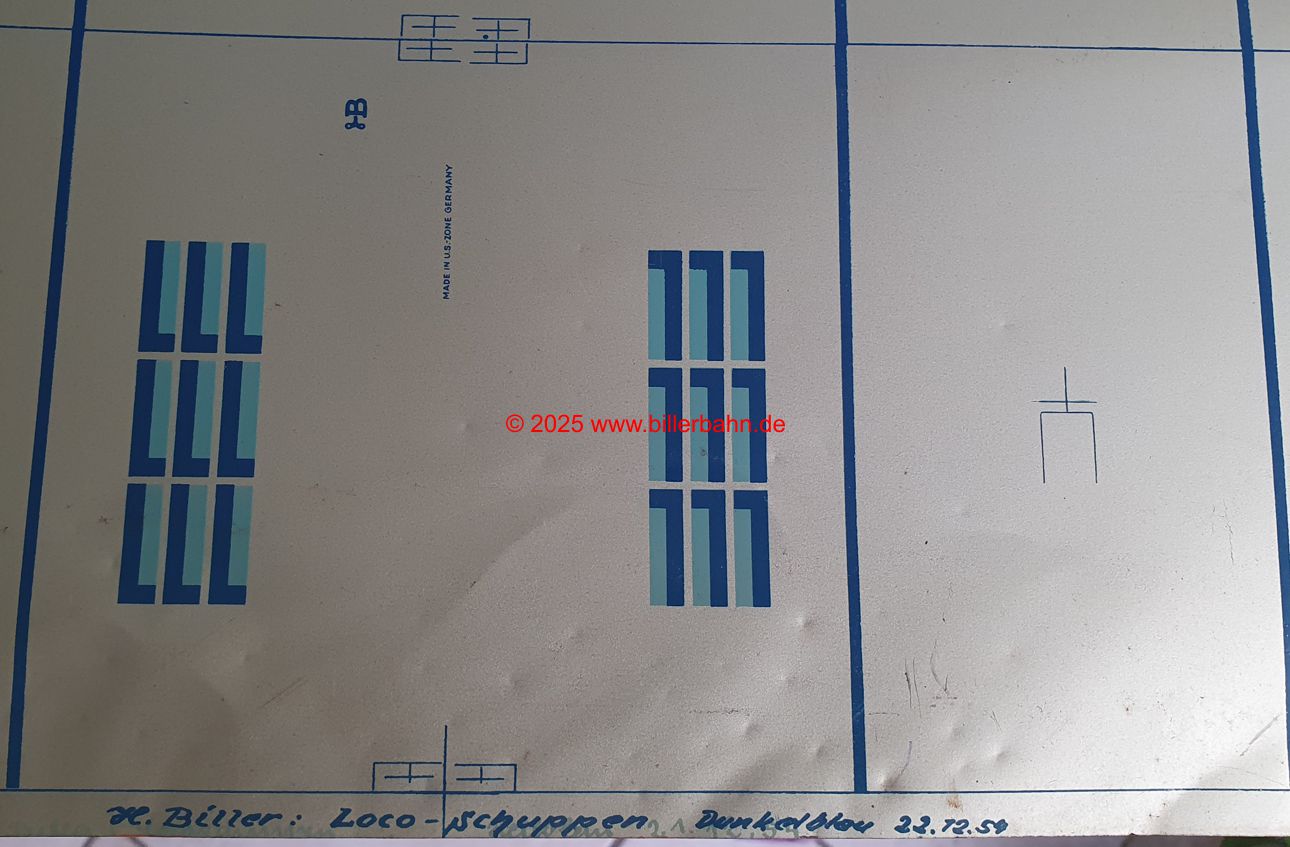 | unstamped sheet metal für 10 Engine Sheds | Order dated December 22nd, 1954 - probably a revised version, since the locomotive shed was part of the program from the beginning. | ||
