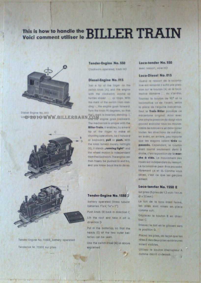 | 12 x 002 straight track, 2 x 004 bumper, 1 x 005 shovel, 14 x 009 curved track, 1 x 010 right hand switch, 1 x 011 left hand switch, 1 x 510 log lorry (green or bright blue), 1 x 511 red side tipper, 1 x 512 ballast wagon, 1 x 1550 steam loco (always 1st version) | The Set 1620 E differs slightly: this set contained a 522 brown goods wagon instead of a 512 ballast wagon. |