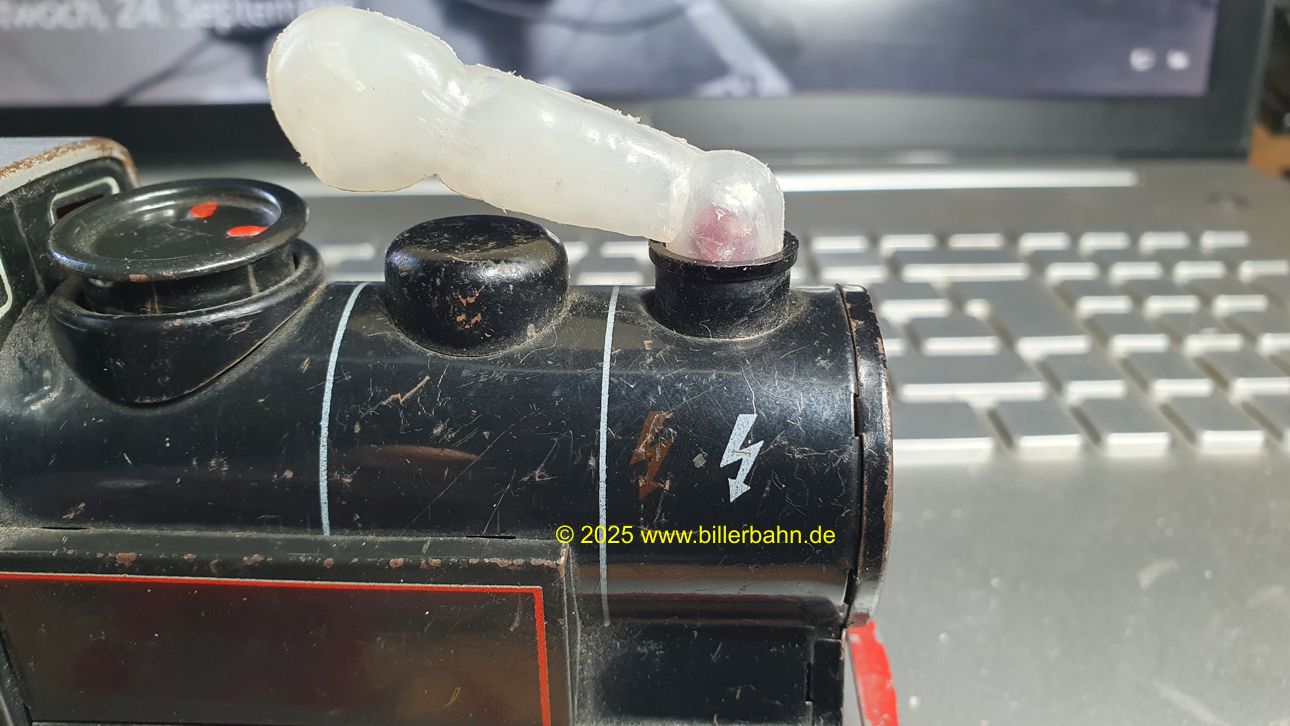 | same as the 1500 E, now having a small red bulb inside the more flat chimney. The plastic smoke makes it appear a real smoking loco. Novelty in 1959 - available until at least 1961. There are at least 2 locos known to have hand-painted coal-boxes. Biller simply used the green coal box of the 500 and painted them black. | It took a really long time - but a team from Switzerland and Germany managed to get a factory convinced to reproduce 20 pieces of the smoke for the 1510 Steam loco. In this case again the well known Swiss Precision was proved. Really well done - thanks a lot to all parties. | ||