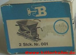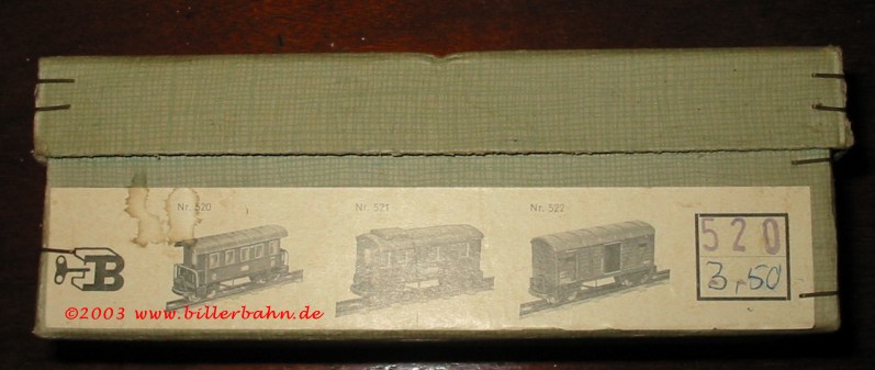 | An early 1960ies "multi-box". Two sides display the possible contents. The left picture shows the actual contents (520) incl. the price (amazing DEM 3,50). | and this box contained 6 x 001 tippers - alternately 6 x 504 crew waggon | ||||||||||||||