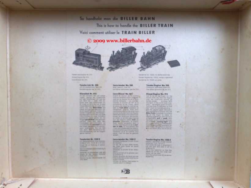 | Train Set of the early / mid 60ies - this lid interior from before 1966 - no 1013 (E) described. Most probably this version also exists with a lid interior showing the Battery Diesel after being issued in 1966. This picture was as well used 1971 - at VEDES | |||||||||||||||