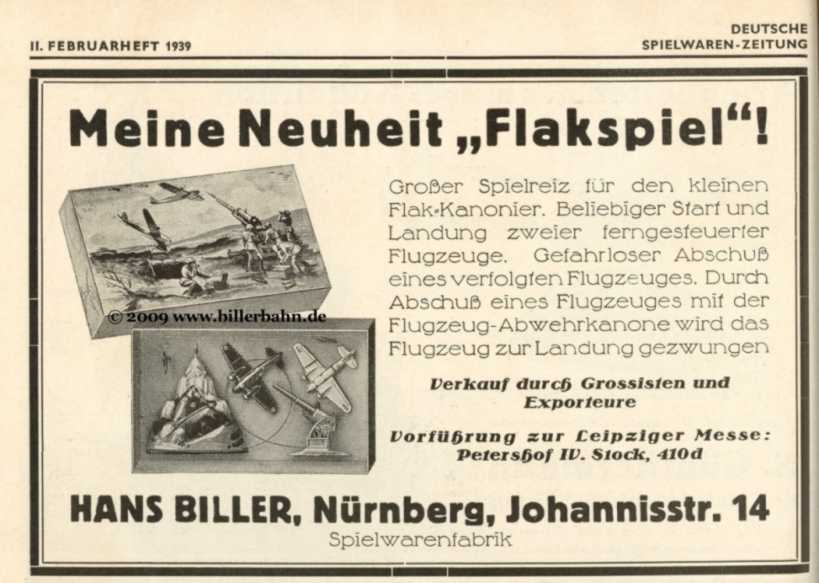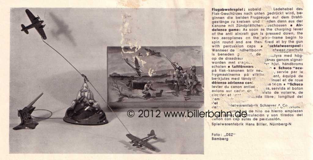 | Das Flak-Spiel in einer Anzeige der Deutschen Spielwarenzeitung von 1939 - zur Leipziger Frühjahrsmesse - und aus einem mir unbekannten Katalog |