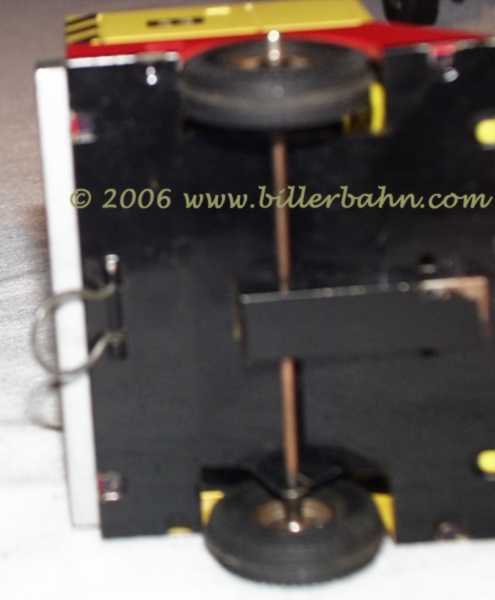 | Unter der Kabine am Bodenblech befindet sich eine Blechöse - hier konnten Kinder ein Band zum hinterher ziehen befestigen. |