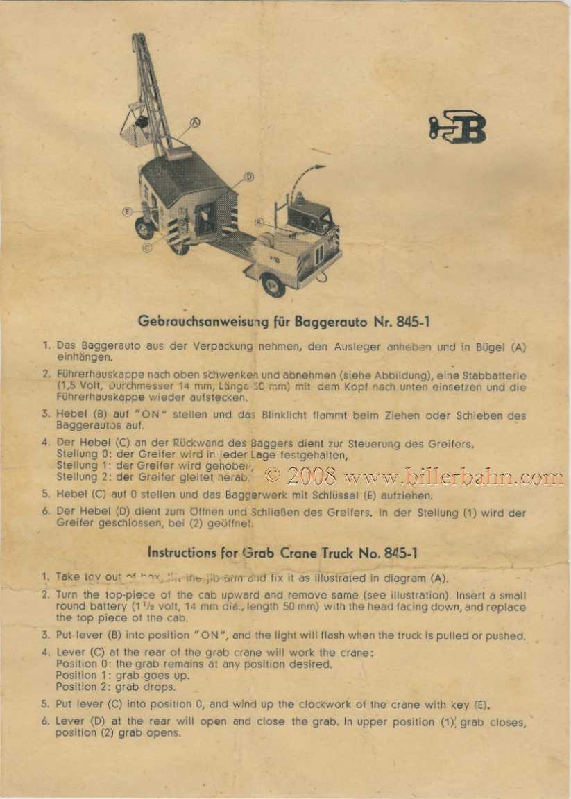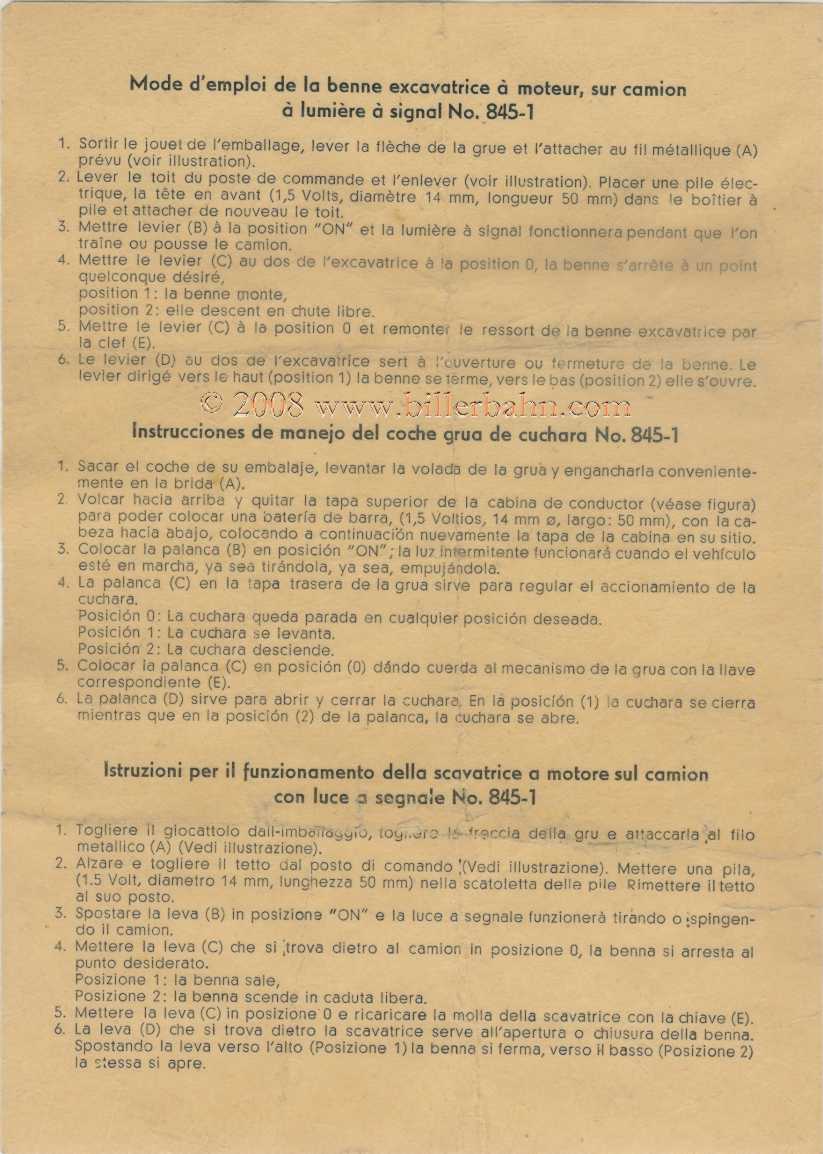 | die 4-sprachige Bedienungsanleitung | der Klischee zum 845-1 bunt | ||